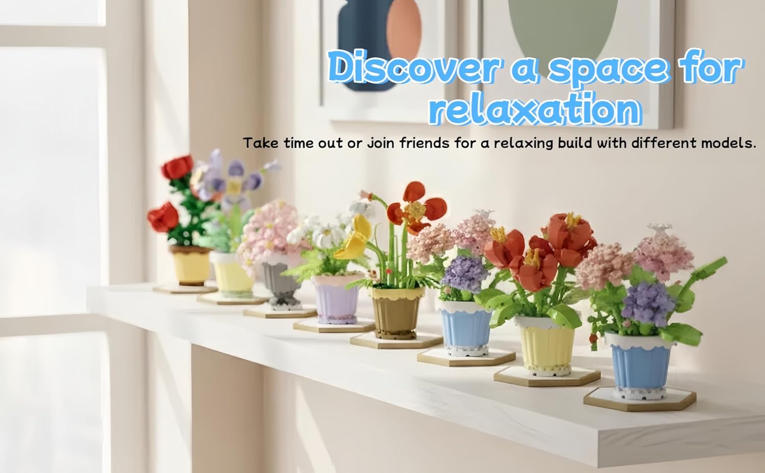Escape the daily grind with our enchanting botanical building kit. This isn't just a toy; it's a journey into mindful creation. Assemble hyper-realistic red roses and corn poppies, piece by satisfying piece, to craft stunning mini potted bonsai or lush bouquets. Designed for older teens and adults, this set combines the focus of a puzzle with the joy of artistic expression. The smooth, interlocking ABS pieces produce a therapeutic “click,” making the process as relaxing as the result. Display your finished masterpiece as a unique, conversation-starting decor for your home office, study desk, or shelf—a permanent reminder of your creativity and calm.