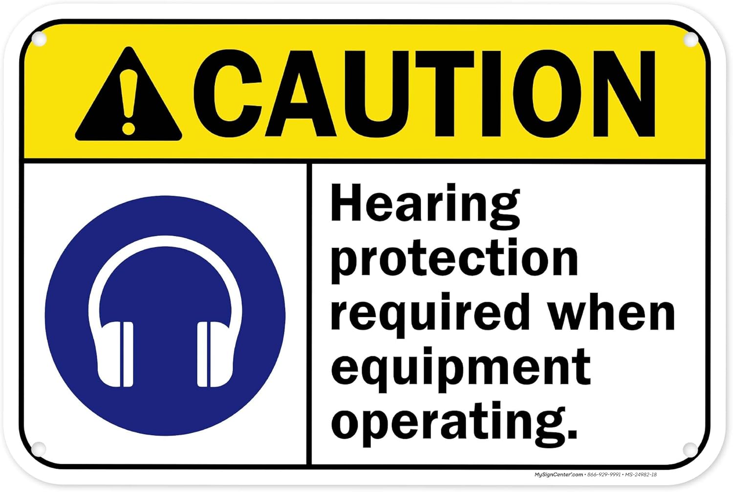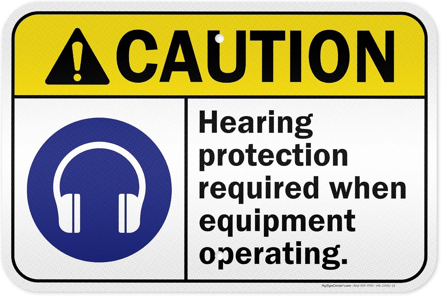 Caution Hearing Protection Required When Equipment Operating Sign, 18x24 Inches, 55 mil thick HDPS (high density polystyrene), Made in USA by My Sign Center