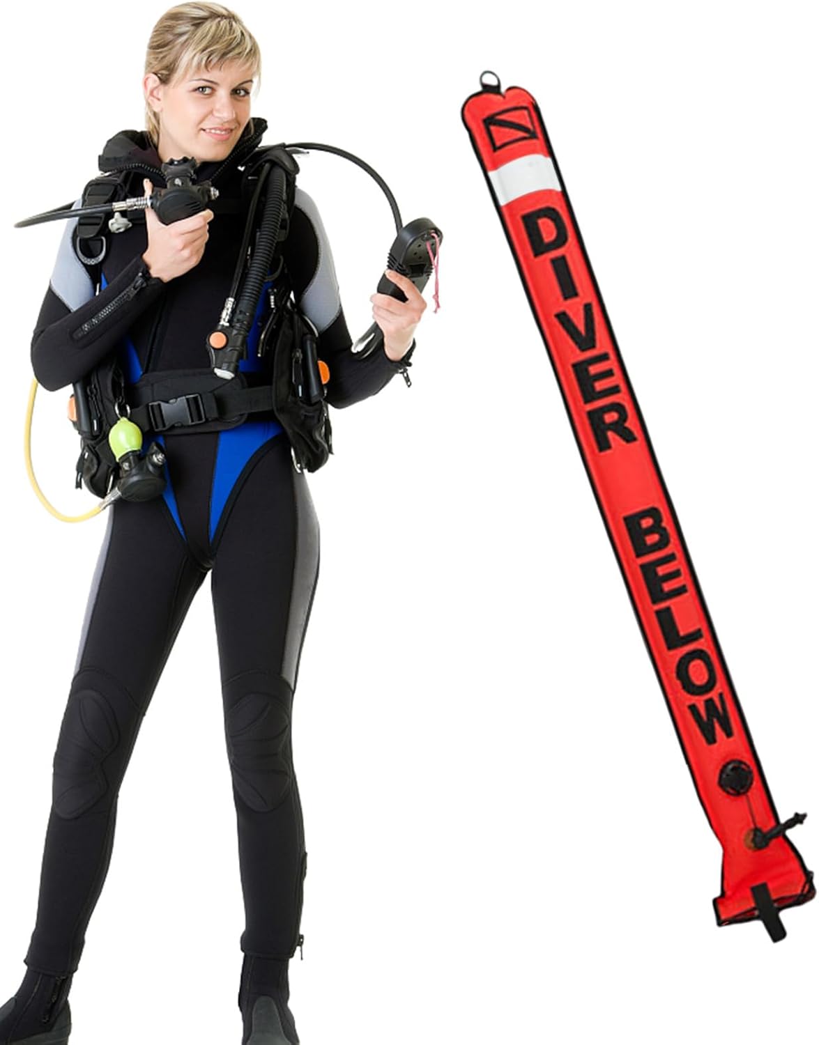 This excellent piece of equipment is marked with a dive flag graphic for added safety and features a TPU coating for added strength. Plus, it quickly deflates for easy storage after use. Experience peace of mind and enhanced diving safety with the Dive Buoy.Product Name: Diving Marking BuoyMaterial: 210D nylon cloth + TPU coatingProduct size: about 115x12.7cm/45.28x5 inchesWeight: 132gPacking List:1* Marker Buoy