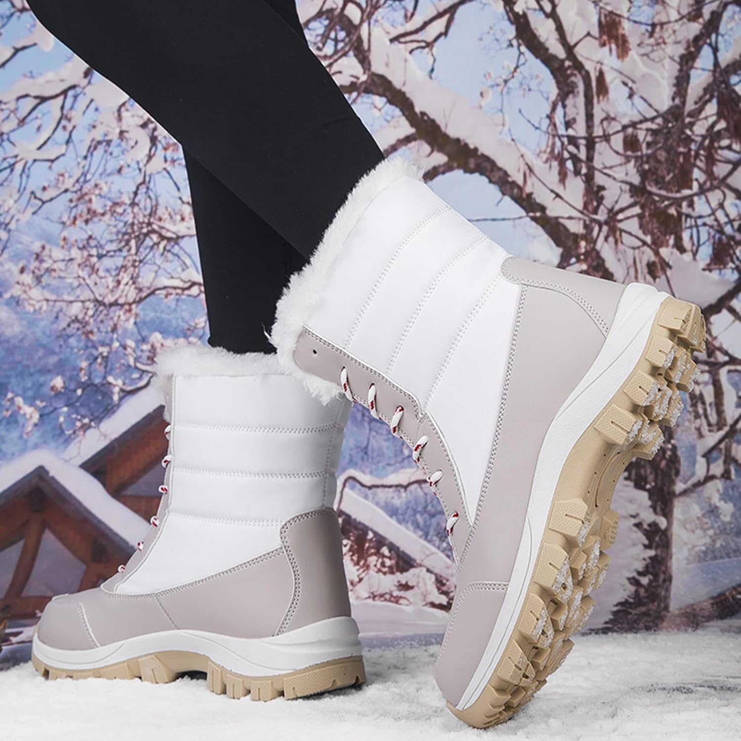 SPECIFICATIONS: Name: Women's Waterproof Winter Boots Color: Red, White, Blue, Black Size: 4, 5, 5.5, 6.5, 7, 8, 8.5 Upper Material: Microfiber Sole Material: Rubber Pattern: Color blocking Lining Material: Thickened plush Package Includes: 1* Women's Waterproof Warm Winter Boots NOTE: Please allow for a 2-3 cm error due to manual measurement. Please ensure you do not mind this before purchasing. The color may vary slightly from the actual color due to variations between computer monitors.