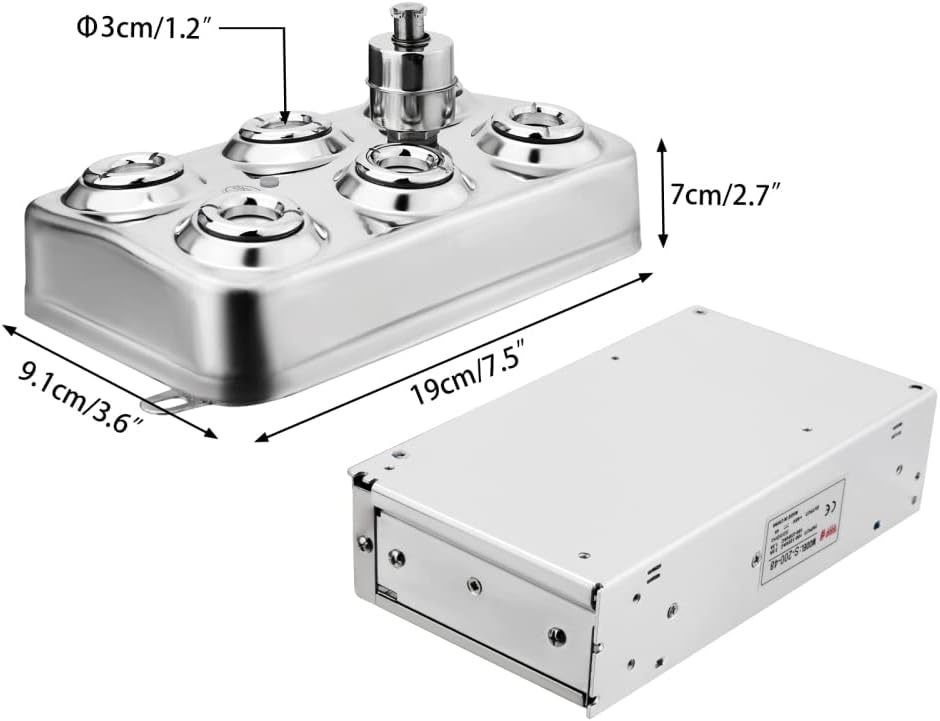 Features:★With stainless steel water shortage automatic power-off sensor, high sensitivity. ★Effective atomization object: regular tap water, electrolyzed water, purified water, water temperature 5-55 ° C. ★ Applicable occasions: Widely used in the preservation of various garden pool foods, hot pot restaurant atmosphere setting, artificial landscape lights and many other occasions.Precautions:☂The water surface is higher than the atomizer water level sensor of about 1CM, the atomization effect is suitable, and the water is too deep, then the buoy is needed.☂When the nebulizer is stopped, disconnect the power supply and remove the nebulizer from the water.☂When the power is on, do not take the atomizer out of the water, or hold it upside down. The atomizer should not be placed on the side of the water.☂If the nebulizer is found to be broken, immediately disconnect the power supply and take the nebulizer out of the water to avoid damage to the nebulizer.Specifications: Housing material: 304 stainless steelFrequency:1.7MHzVoltage: DC48VPower: 200WAmount of fog: 3kg/hNotes:❣ Please allow 1-3mm error due to manual measurement.❣ Due to the light and screen differences, the color of the item may be slightly different from the display.❣ If you have any questions, do not hesitate to contact us and send us a message. We will contact you within 24 business hours and provide a satisfactory solution