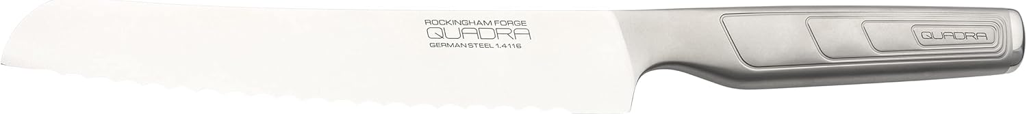 The Rockingham Forge Quadra range is an ultra-modern selection of high-quality kitchen knives, featuring a futuristic, angular design made from premium 1.4116 German Steel. This blend of stainless steel offers an attractive, gleaming appearance from handle to tip as well as being easy to sharpen and resistant to rust. These features all combine to make Quadra knives a perfect choice for home cooks and professional chefs alike. The Quadra Utility knife is similar in blade shape to the range’s chef’s knife, but with a shorter 5” blade which makes it more well suited to kitchen tasks which require precise cutting. The blade is especially good for slicing and chopping smaller foods such as cheese, small fruits and vegetables and sandwiches. The Rockingham Forge Quadra range also contains the following knives: 8” Chef’s Knife, 8” Bread Knife, 8” Carving Knife, 7” Santoku knife, 5” Santoku Knife, 4” Paring Knife.