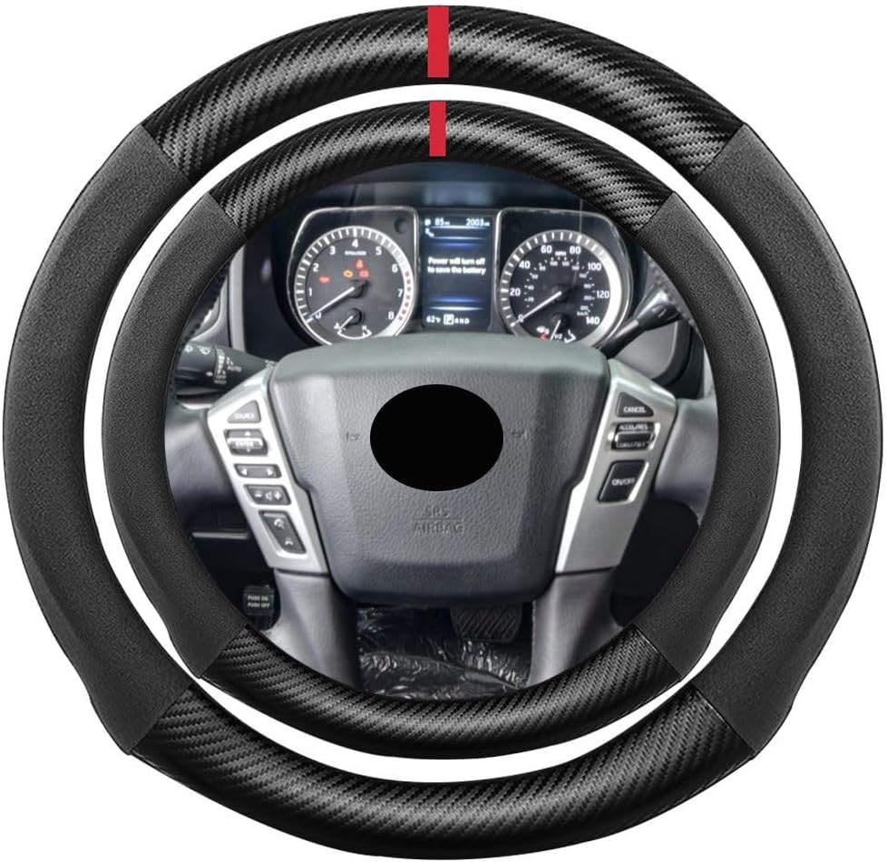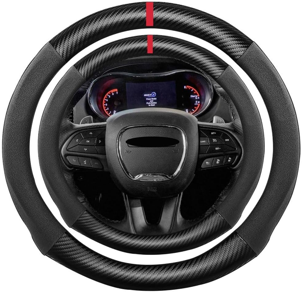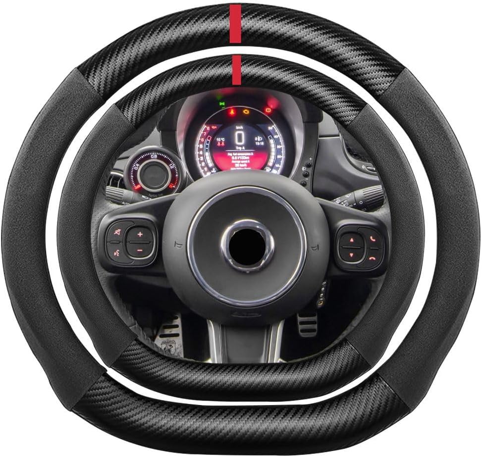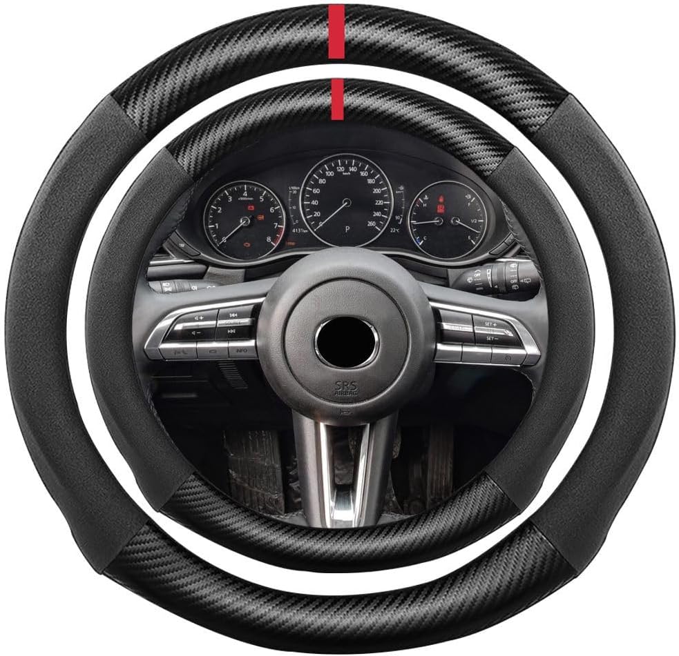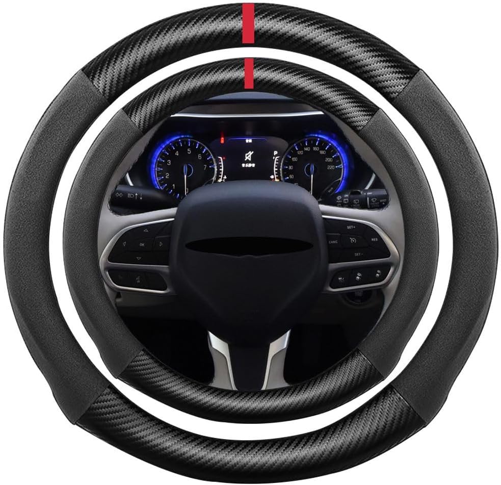 K LAKEY Suede Carbon Fiber Steering Wheel Cover, Compatible with Toyota 4Runner Sequoia Tacoma Tundra Sienna 16 inch Soft Suede Touch Leather Sport Non-Slip Automotive Interior Accessories